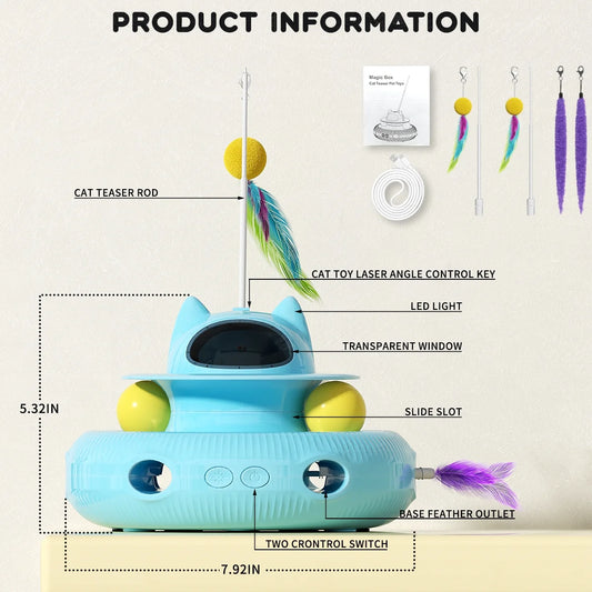 4 in 1 Interactive Cat Toys with USB Rechargeable,Smart Cat Feather Wand for Indoor Cats with Red Beam,Smart Interactive Electronic Exercise Kitten Toys,Exercise Cat Wand,Indoor Exercise Cat Kicker